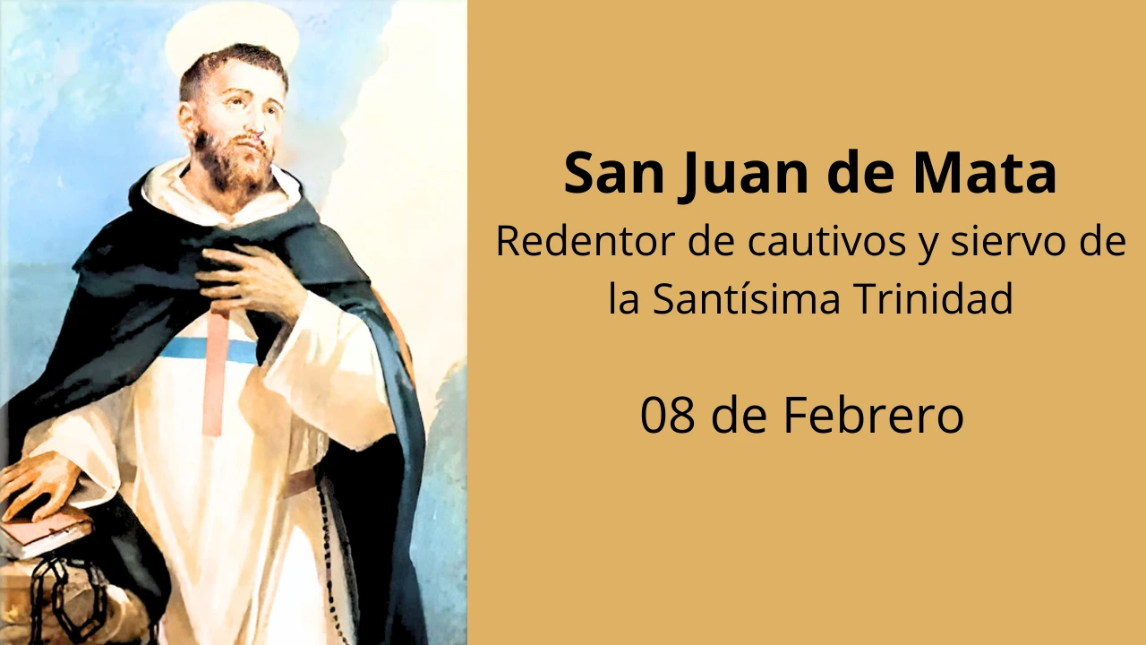 San Juan de Mata nació el 23 de junio de 1160 en el castillo de Falcón, en Provenza, fruto de la oración ferviente de sus padres, Eufemio de Mata y Marta de Marsa. La Santísima Virgen anunció a su madre que el niño sería puro como los ángeles y destinado a una gran obra: la redención de cautivos cristianos. Desde su origen, su vida quedó marcada por un designio sobrenatural.