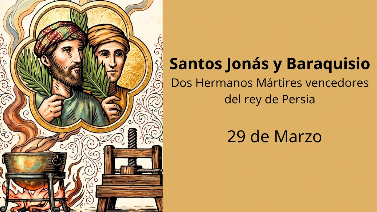 1. La Caridad Fraterna en el Combate por la Fe: Los Santos Jonás y Baraquisio no buscaron su propia seguridad, sino que, encendidos en caridad, acudieron a fortalecer y animar a sus hermanos prisioneros, recordándoles la recompensa eterna del martirio. Esta lección nos enseña que la verdadera caridad nos impulsa a sostener a nuestros hermanos en los momentos de prueba, uniéndonos en la defensa de la verdad.